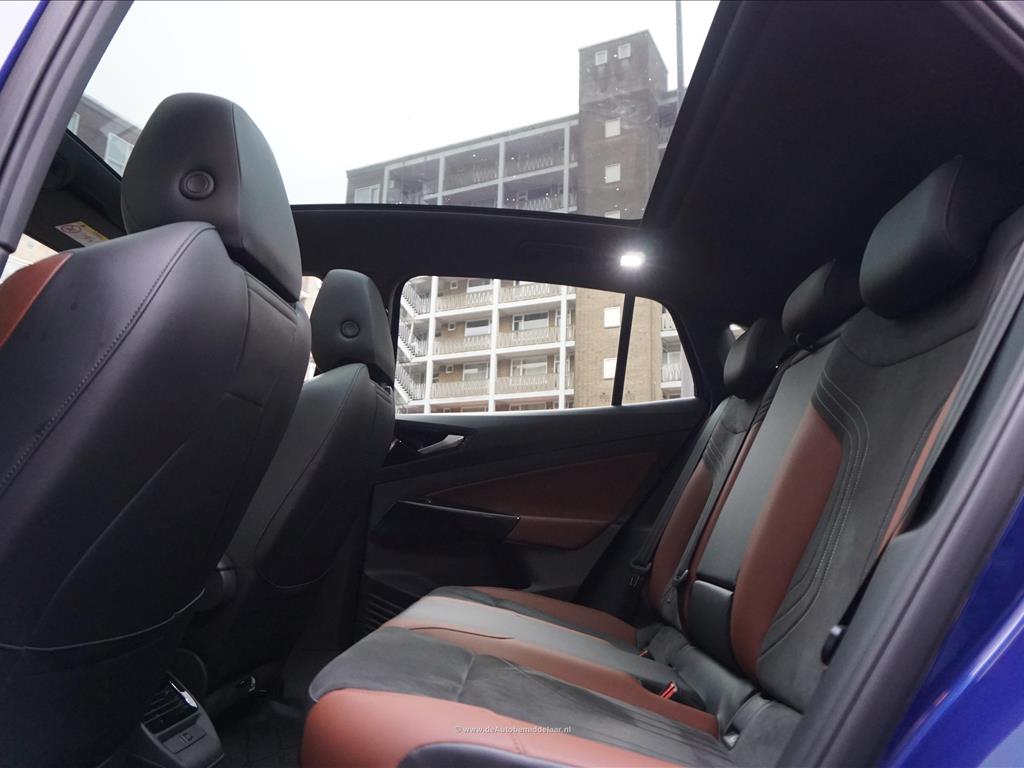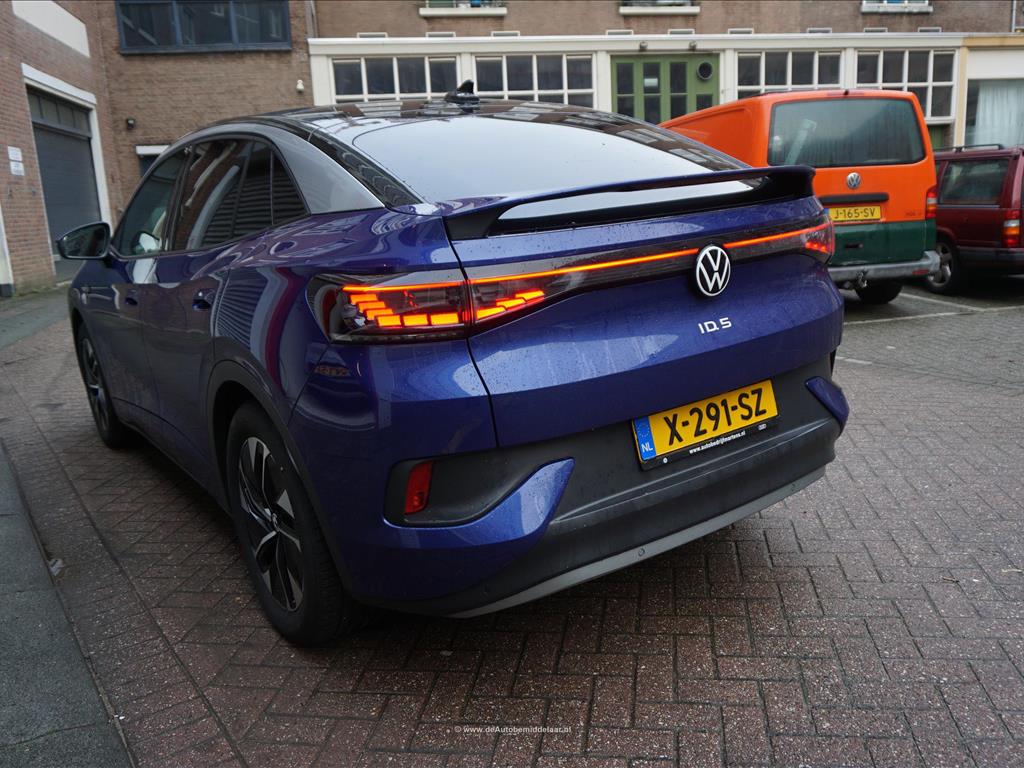 Rijkelijk uitgevoerde Volkswagen ID.5 77 kWh | Panoramadak | Adaptieve cruise control + lane departure met stuurcorrectie | MATRIX LED | 360 (TopView) camera | Lederen bekleding (velours middenbaan) | Sfeerverlichting | Stoelverwarming | Verwarmd stuurwiel | APPLE CarPlay/ Android Auto/ DAB audio/ Blue Tooth interface | Privacy glas achter | Dakspoiler | Afwijkende dakkleur (zwart) met zilver metallic daklijsten | Fabrieksgarantie 2-2028 | HV Batterij garantie 2-2031 of 160.000km | SOH 94.8% | achterbank in delen neerklapbaar, achterbank met armsteun en skiluik, achteruitrijcamera, alarm klasse 1(startblokkering), alarmsysteem, andere dakkleur, Anti Blokkeer Systeem, Anti doorSlip Regeling, Apple Carplay/Android Auto, armsteun voor, Autonomous Emergency Braking, bandenspanningscontrolesysteem, bestuurdersairbag, bestuurdersstoel in hoogte verstelbaar, binnenspiegel automatisch dimmend, Bluetooth, bots herkenning en activatie, buitenspiegels elektrisch inklapbaar, buitenspiegels elektrisch verstel- en verwarmbaar, centrale airbag voor, centrale vergrendeling met afstandsbediening, comfortstoel(en), connected services, cruise control adaptief, DAB, dakrails, draadloze telefoonlader, electronic climate control, elektrische ramen achter, elektrische ramen voor, Elektronisch Stabiliteits Programma, geluidsimulator, geluidsisolerend glas, hemelbekleding donker, hoofd airbag(s) achter, hoofd airbag(s) voor, interieur voorverwarming/(koeling), keyless entry, keyless start, kunstlederen interieurdelen, LED achterlichten, LED dagrijverlichting, LED koplampen, lichtmetalen velgen 19", multimedia scherm middel, multimedia-voorbereiding, navigatiesysteem, oplaadmogelijkheid, parkeersensor achter, parkeersensor voor, passagiersairbag, radio, regensensor, rijstrooksensor met correctie, ruitensproeiers/wisserbladen verwarmbaar, sfeerverlichting, spraakbediening, stuur leder, stuur multifunctioneel, stuur verwarmd, stuurbekrachtiging snelheidsafhankelijk, verkeersbord detectie, vermoeidheids herkenning, verwarmde voorruit, volledig digitaal instrumentenpaneel, voorstoelen verwarmd, warmtewerend glas, WiFi, zij airbag(s) voor, metaalkleur, dodehoek detectie, elektrisch bedienbare achterklep met sensorsturing, file assistent, rondomzicht camera, extra getint glas achter, grootlichtassistent, matrix LED koplampen, panoramadak, grootlichtassistent, matrix LED koplampen, armsteun achter, passagiersstoel in hoogte verstelbaar, velours bekleding.